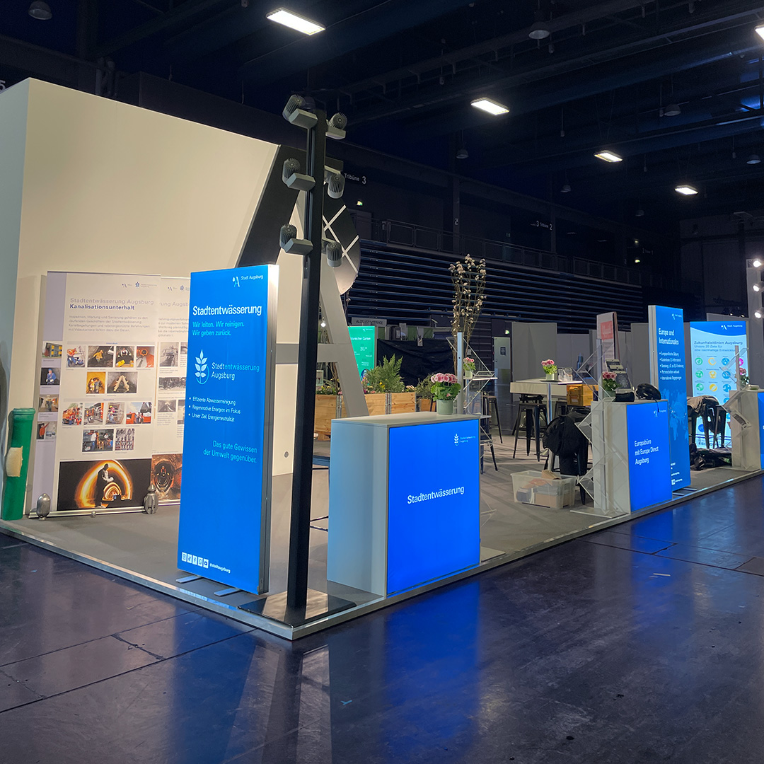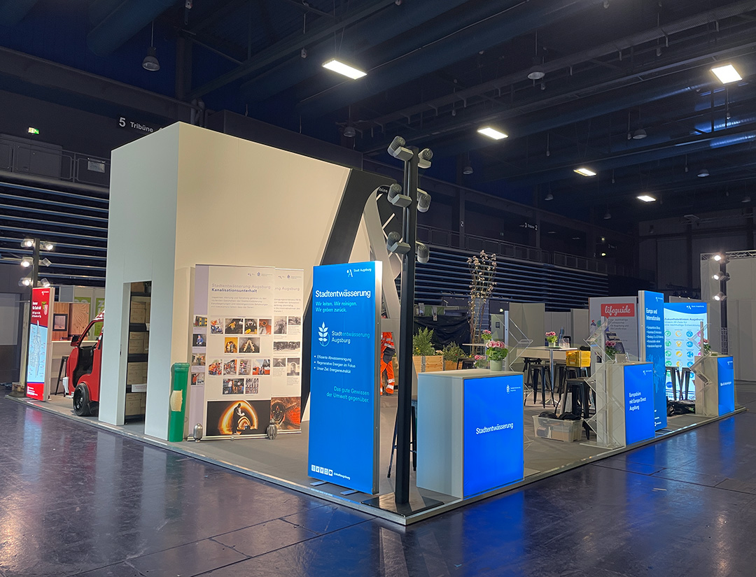 Das eest!-Team übernahm für unseren Kunden – die Stadt Augsburg – die Standkonzeption, das Messedesign und den Messebau, um einen einzigartigen Messeauftritt auf der großzügigen Standfläche von 100 m² zu garantieren.