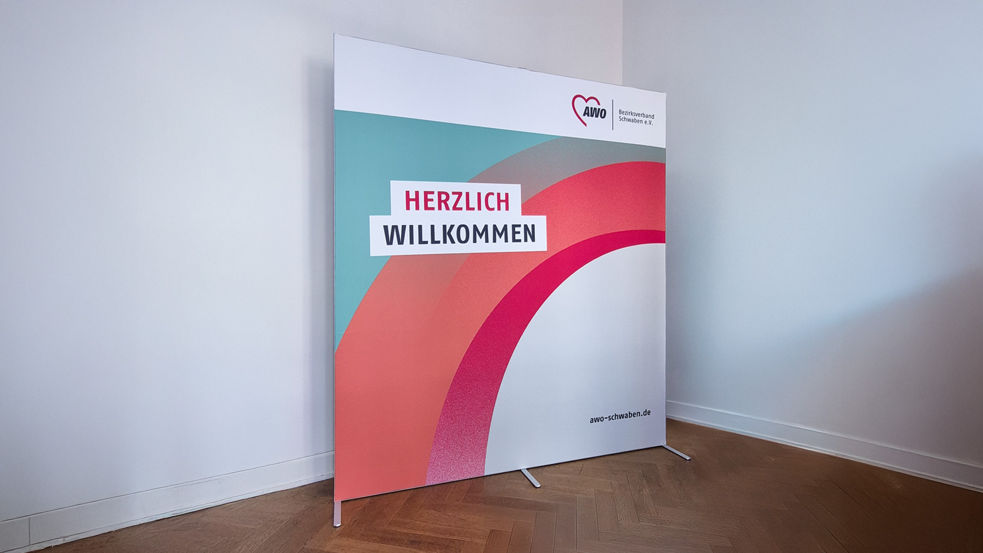 Die Stoffgrafiken sind austauschbar und können mehrfach eingesetzt werden – ein klarer Vorteil in Sachen Nachhaltigkeit und Kostenersparnis.